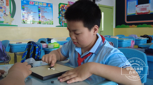 15日12时,长春净月潭实验小学正值午休,同学们正在操场上玩耍,走进班级,爱马正在与同学下象棋。