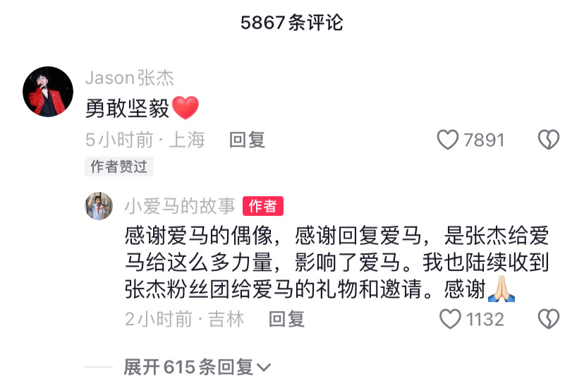 采访结束时,爱马还告诉记者一个“小秘密”。他的偶像歌手张杰在妈妈的视频下方评论留言,夸他勇敢坚毅,鼓励自己继续努力。并且他还收到了张杰粉丝团的礼物和邀请,他可以到现场去听偶像唱歌了,说到这,爱马又笑了!